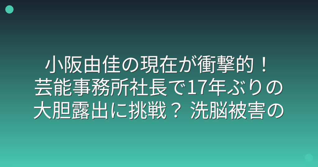 小阪由佳の現在が衝撃的!芸能事務所社長で17年ぶりの大胆露出に挑戦? 洗脳被害の真相も明らかに!