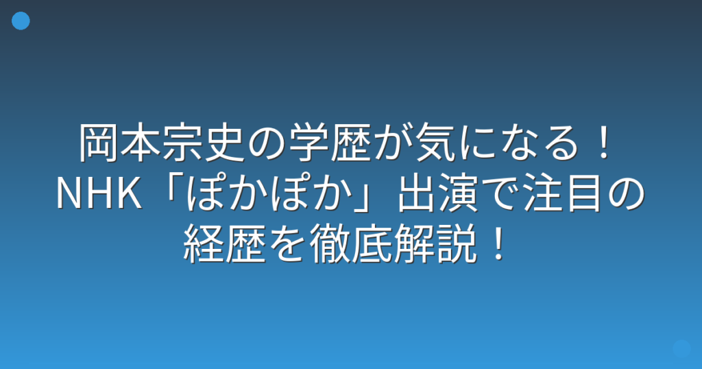 岡本宗史の学歴が気になる!NHK「ぽかぽか」出演で注目の経歴を徹底解説!