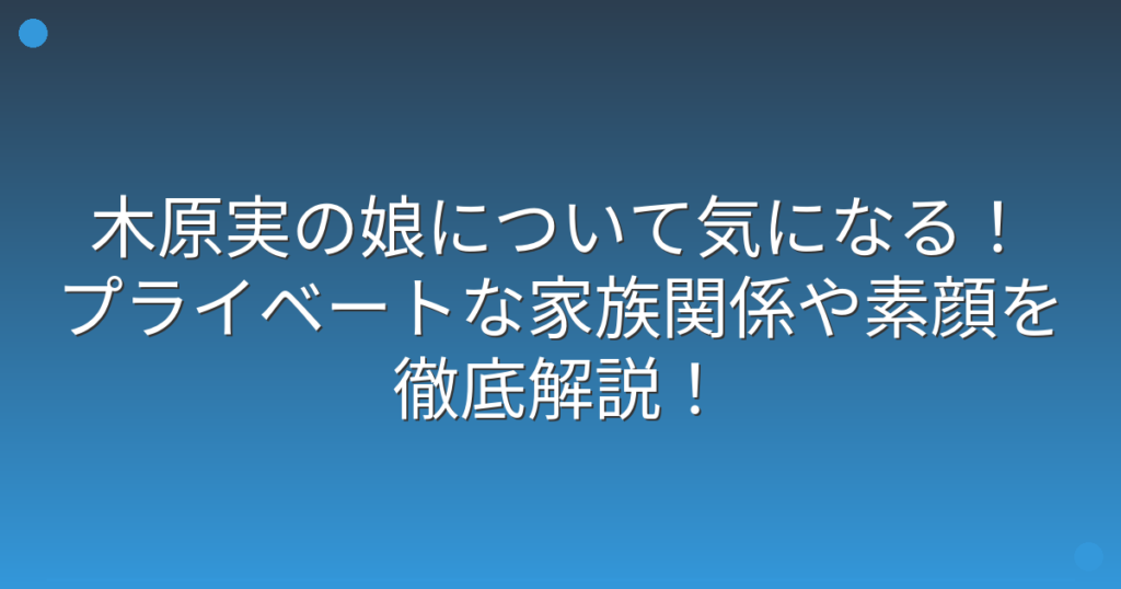 木原実の娘について気になる!プライベートな家族関係や素顔を徹底解説!