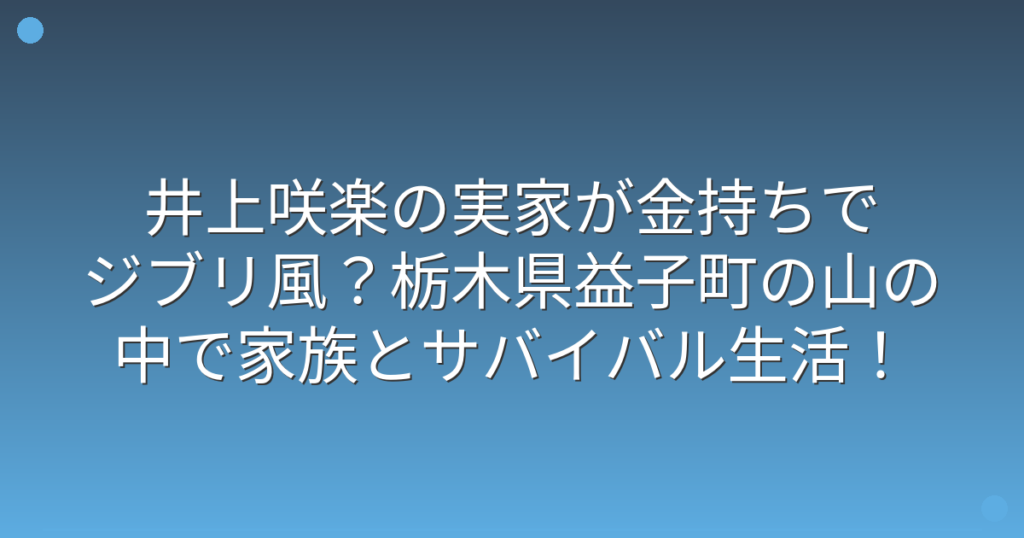 井上咲楽の実家が金持ちでジブリ風?栃木県益子町の山の中で家族とサバイバル生活!