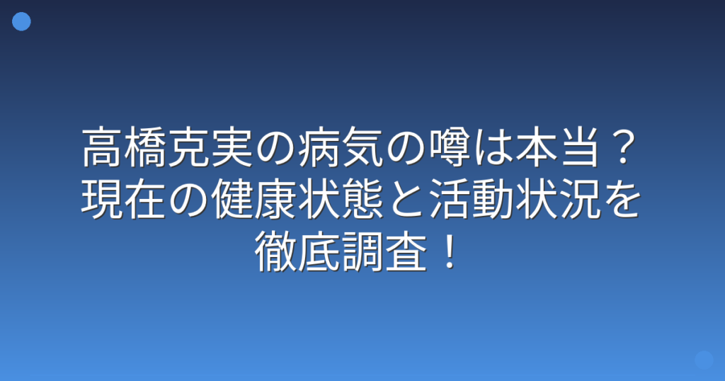 高橋克実の病気の噂は本当?現在の健康状態と活動状況を徹底調査!