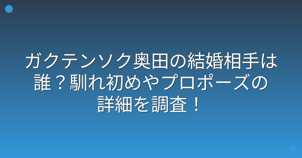 ガクテンソク奥田の結婚相手は誰?馴れ初めやプロポーズの詳細を調査!