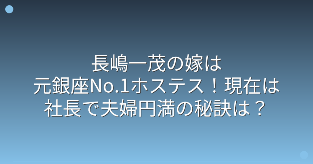 長嶋一茂の嫁は元銀座No.1ホステス!現在は社長で夫婦円満の秘訣は?