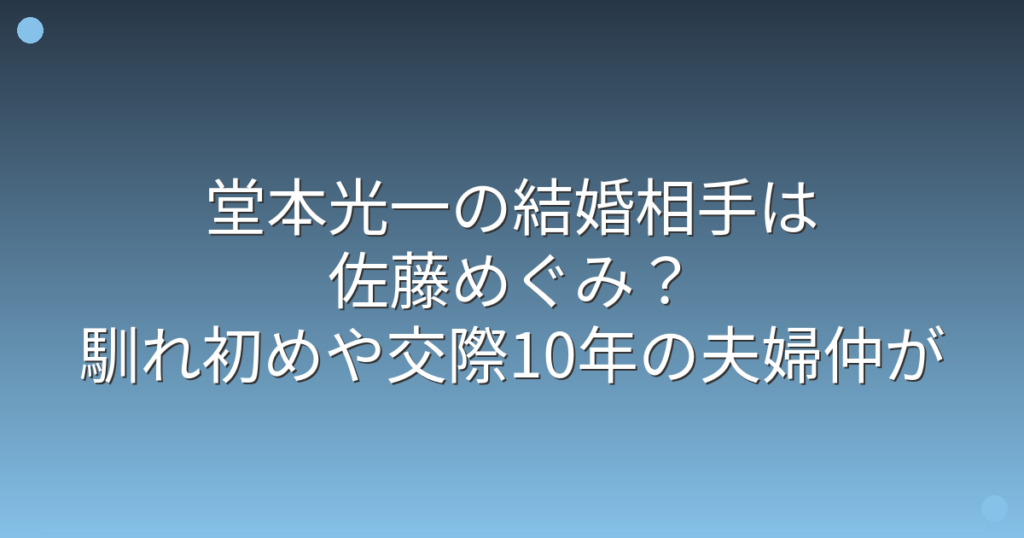 堂本光一の結婚相手は佐藤めぐみ?馴れ初めや交際10年の夫婦仲が明らかに!