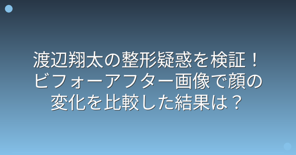 渡辺翔太の整形疑惑を検証!ビフォーアフター画像で顔の変化を比較した結果は?