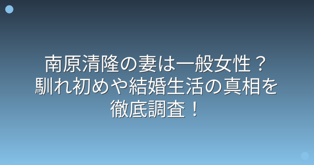 南原清隆の妻は一般女性?馴れ初めや結婚生活の真相を徹底調査!