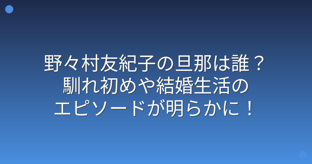 野々村友紀子の旦那は誰?馴れ初めや結婚生活のエピソードが明らかに!