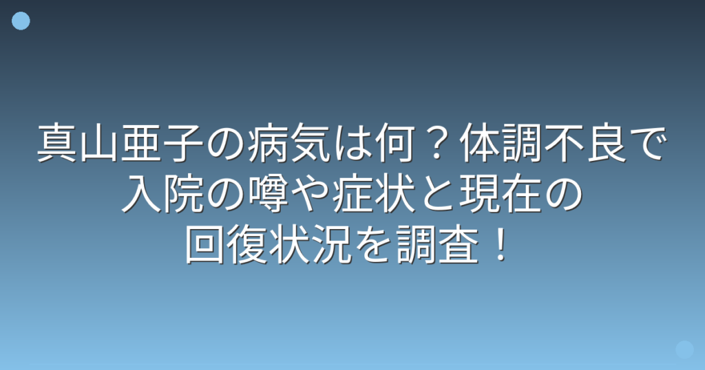 真山亜子の病気は何?体調不良で入院の噂や症状と現在の回復状況を調査!