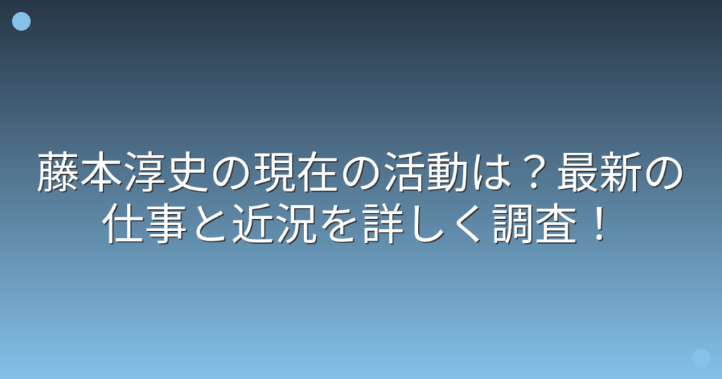 お笑いコンビ・FUJIWARAの藤本淳史さんの現在が話題になっていますね。 テレビで活躍していた藤本淳史さんですが、最近の活動が気になっている方も多いのではないでしょうか。 そこで今回は、藤本淳史さんの現在の活動や最新の仕事、近況について詳しく見... -