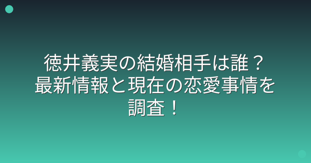 お笑いコンビ・チュートリアルの徳井義実さんの結婚相手について、ファンの間で話題になっていますね。 イケメン芸人として知られる徳井義実さんですが、結婚しているのか、それとも独身なのか気になっている方も多いのではないでしょうか。 そこで今回は... -