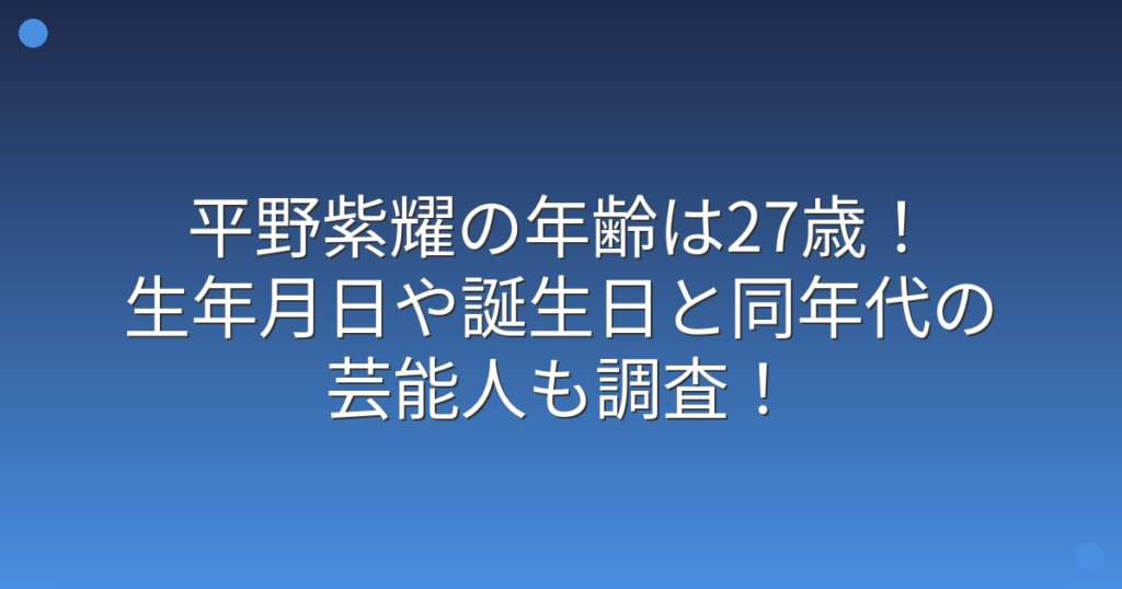 平野紫耀の年齢は27歳!生年月日や誕生日と同年代の芸能人も調査!