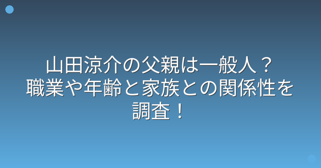 Hey! Say! JUMPのメンバーとして活躍する山田涼介さんですが、その家族構成や父親について気になる方も多いのではないでしょうか。 トップアイドルとして長年活躍する山田涼介さんの父親はどんな人物なのか、ファンの間でも話題になっています。 そこで今... -