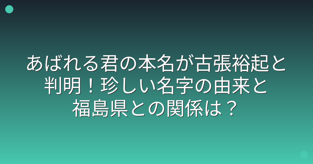 今回は、あばれる君さんの本名が古張裕起であることや、珍しい名字の由来と福島県との関係についてお伝えしてきました。