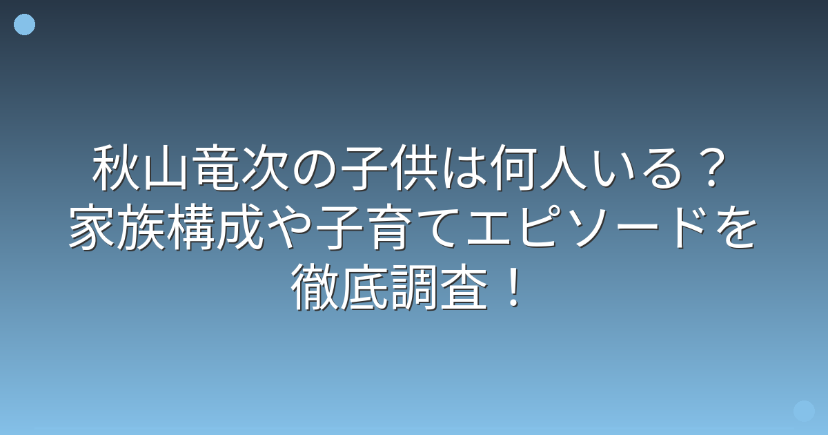 結論から申し上げますと、秋山竜次さんご本人が子供の有無や詳細について公式に発表した情報は確認できませんでした。