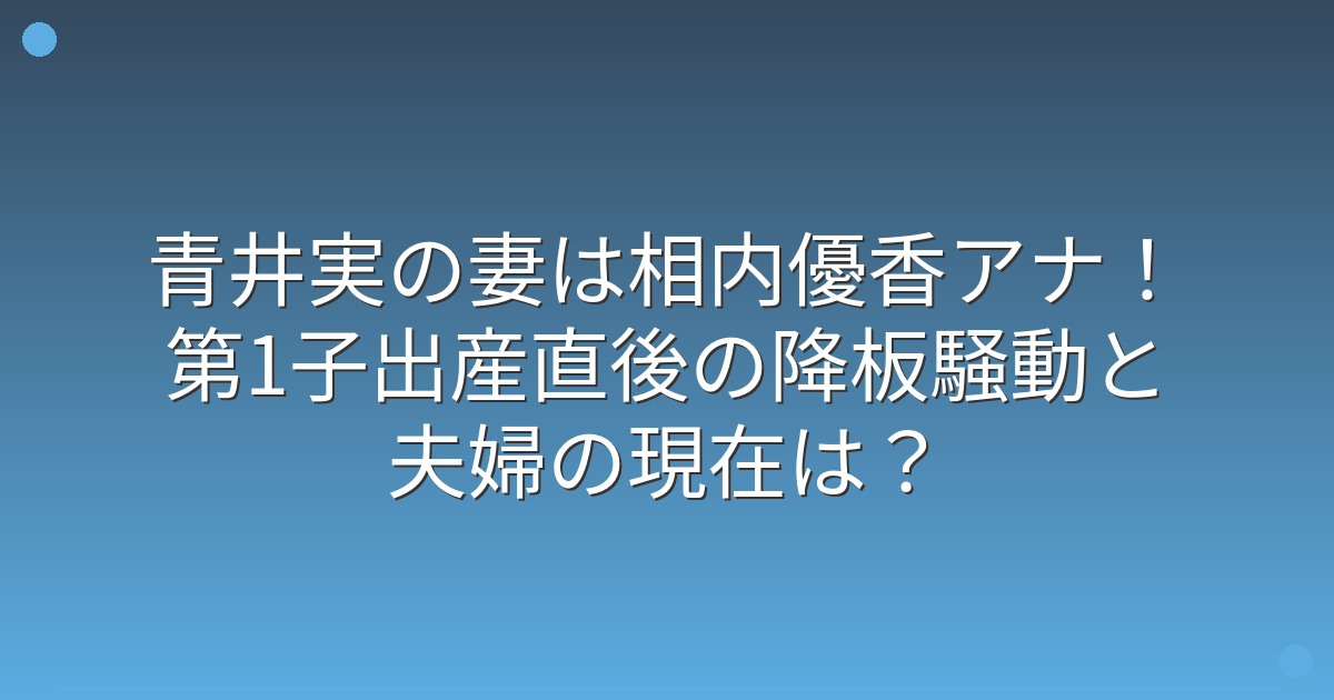 そこで今回は、青井実さんの妻である相内優香さんについて、お二人の馴れ初めや結婚生活、そして降板騒動との関係について詳しく見ていきましょう!
