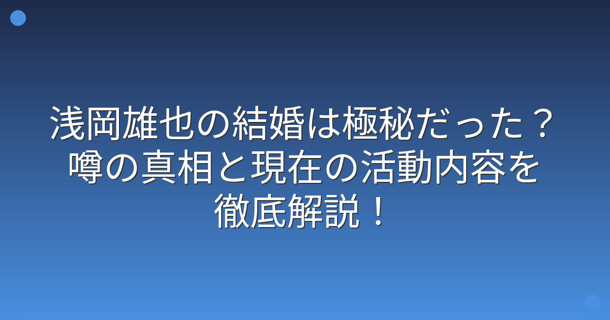 そこで今回は、浅岡雄也さんの結婚に関する噂や真相、そして現在の活動内容について詳しく見ていきましょう!