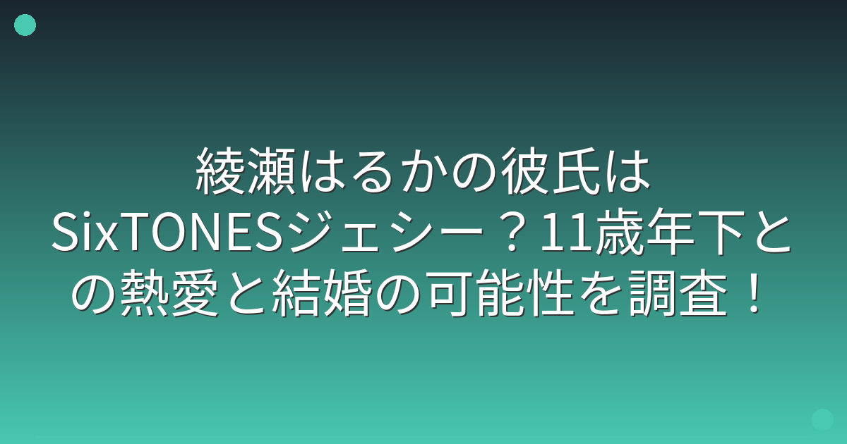 2024年7月、綾瀬はるかさんとジャニーズの人気グループSixTONESのメンバーであるジェシーさんとの熱愛が週刊誌によって報じられました。