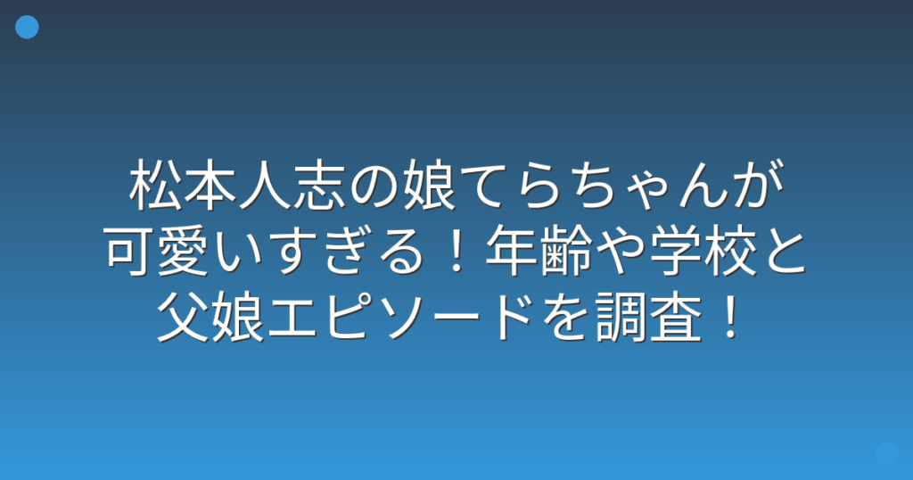 松本人志の娘てらちゃんが可愛いすぎる!年齢や学校と父娘エピソードを調査!