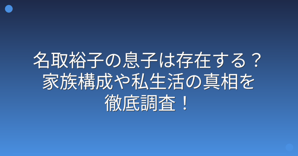 名取裕子の息子は存在する?家族構成や私生活の真相を徹底調査!