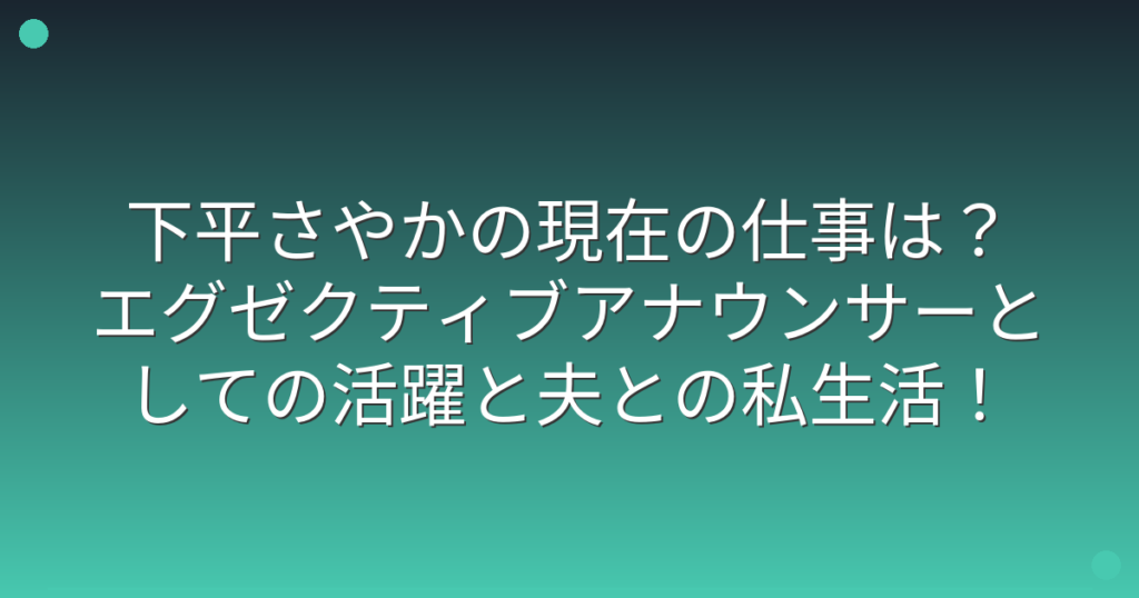 下平さやかの現在の仕事は?エグゼクティブアナウンサーとしての活躍と夫との私生活!