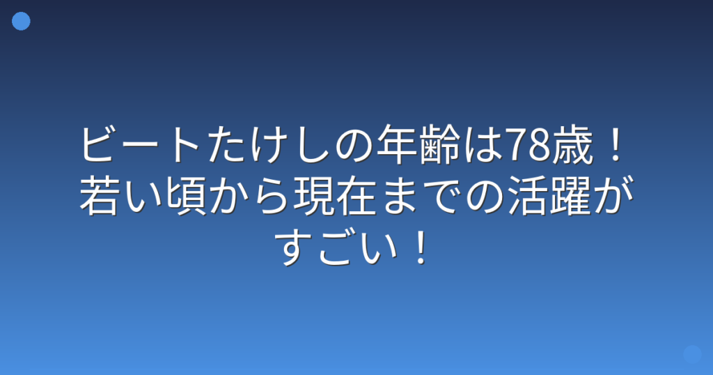 ビートたけしさんの年齢について、多くの方が興味を持たれているようですね。 2025年9月時点で78歳となるビートたけしさんですが、映画監督や俳優として今なお精力的に活動を続けています。 そこで今回は、ビートたけしさんの年齢や生年月日、そして若い頃...