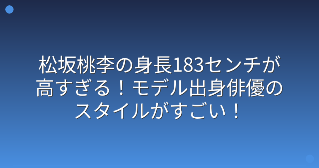 松坂桃李さんの抜群のスタイルが話題になっていますね。 特に183センチという高身長は、日本人男性の平均身長と比べてもかなり高く、注目を集めています。 そこで今回は、松坂桃李さんの身長やスタイルについて、詳しく見ていきましょう! 【松坂桃李の身... -