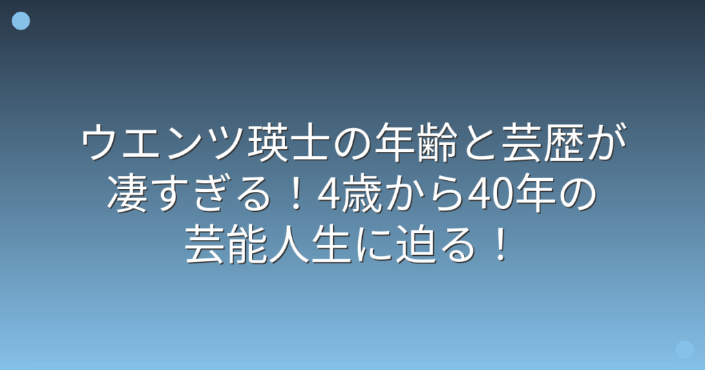 ウエンツ瑛士の年齢と芸歴が凄すぎる!4歳から40年の芸能人生に迫る!