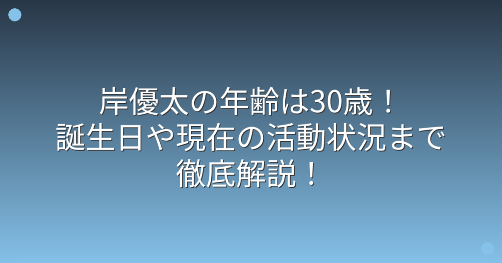 岸優太の年齢は30歳!誕生日や現在の活動状況まで徹底解説!