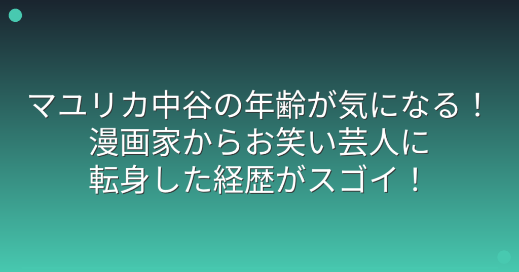 マユリカ中谷の年齢が気になる!漫画家からお笑い芸人に転身した経歴がスゴイ!