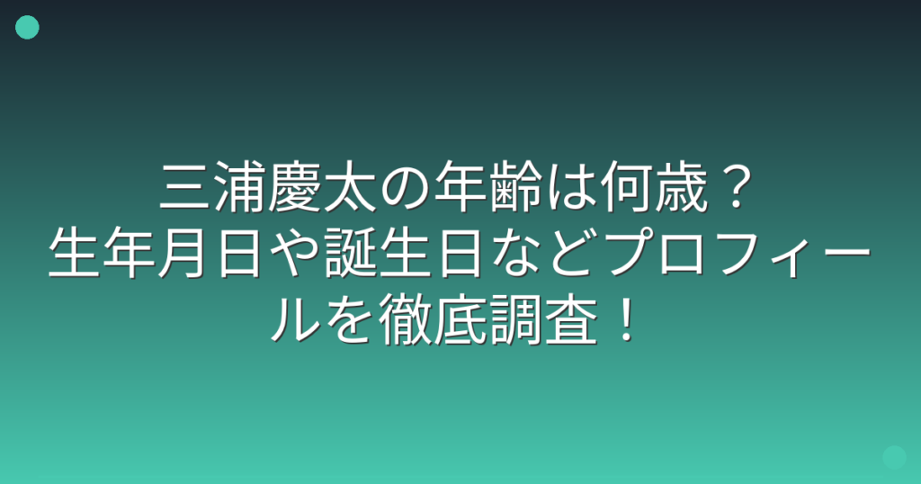 三浦慶太の年齢は何歳?生年月日や誕生日などプロフィールを徹底調査!