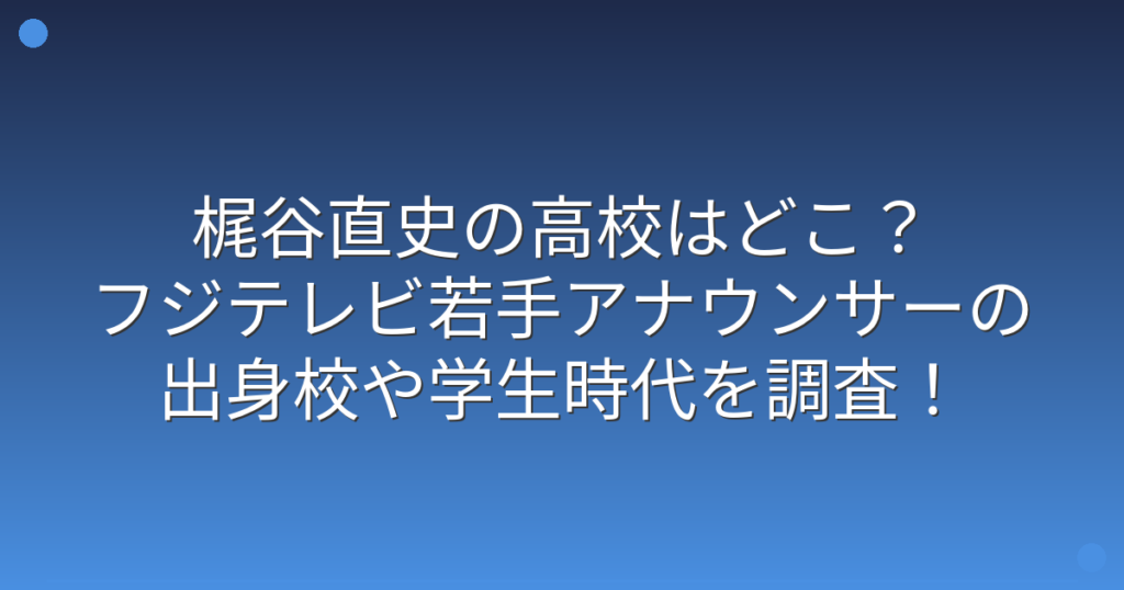 梶谷直史の高校はどこ?フジテレビ若手アナウンサーの出身校や学生時代を調査!