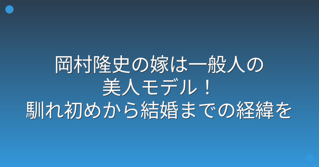 お笑い芸人の岡村隆史さんの結婚が、今でも多くの方の関心を集めています。 2020年10月に一般女性との結婚を発表し、芸能界でも大きな話題となりました。 そこで今回は、岡村隆史さんの奥様について、馴れ初めから結婚までの経緯を詳しく見ていきましょう... -