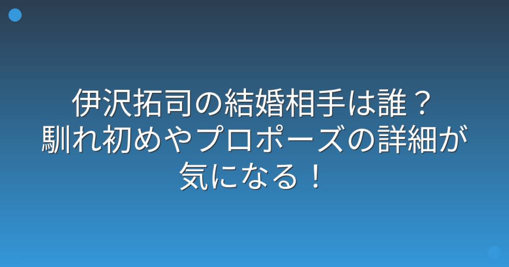 伊沢拓司の結婚相手は誰?馴れ初めやプロポーズの詳細が気になる!