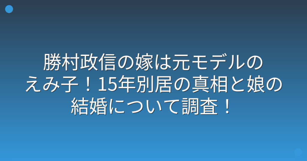 勝村政信の嫁は元モデルのえみ子!15年別居の真相と娘の結婚について調査!