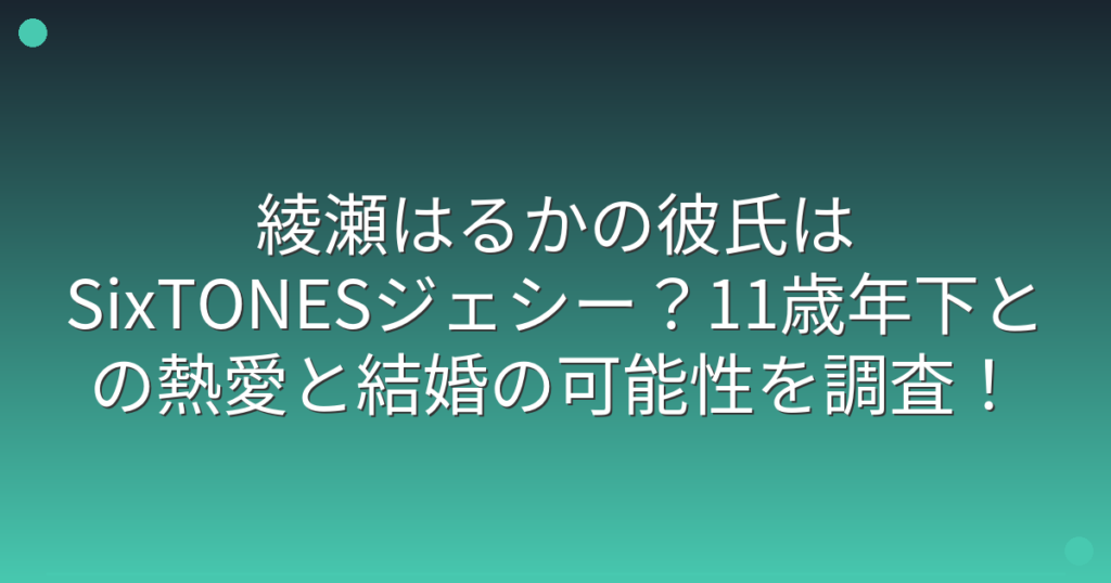 綾瀬はるかの彼氏はSixTONESジェシー?11歳年下との熱愛と結婚の可能性を調査!