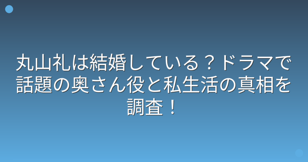 丸山礼は結婚している?ドラマで話題の奥さん役と私生活の真相を調査!