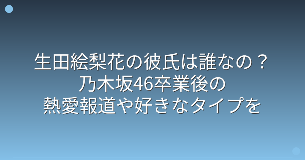生田絵梨花の彼氏は誰なの?乃木坂46卒業後の熱愛報道や好きなタイプを徹底調査!