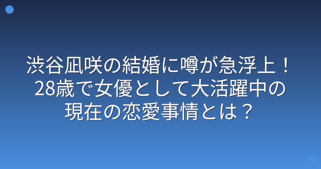 渋谷凪咲の結婚に噂が急浮上!28歳で女優として大活躍中の現在の恋愛事情とは?