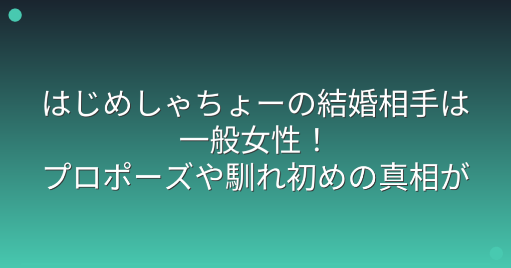 人気YouTuberのはじめしゃちょーさんの結婚が、ネット上で大きな話題となっていますね。 2025年8月30日、YouTubeチャンネルでの電撃発表により、ファンに大きな衝撃を与えました。 そこで今回は、はじめしゃちょーさんの結婚について、お相手の情報や馴れ... -