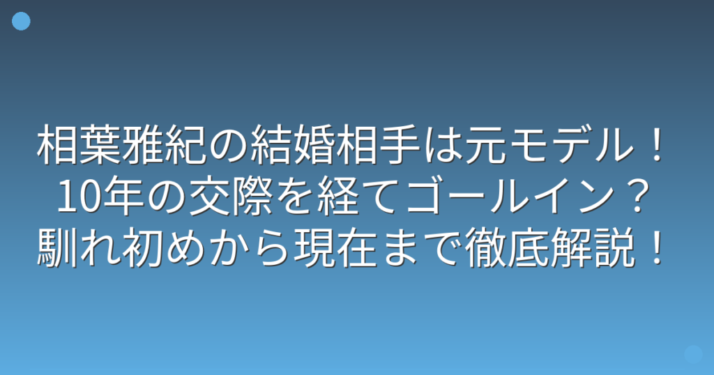 相葉雅紀の結婚相手は元モデル!10年の交際を経てゴールイン?馴れ初めから現在まで徹底解説!