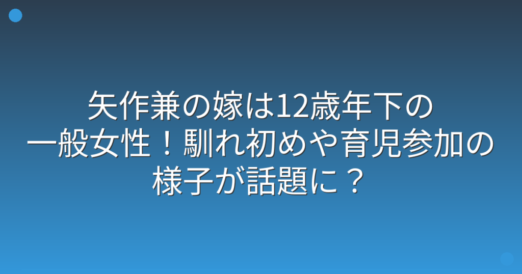 矢作兼の嫁は12歳年下の一般女性!馴れ初めや育児参加の様子が話題に?