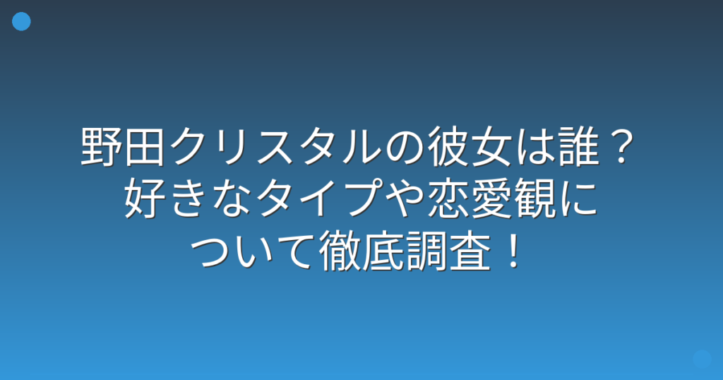 野田クリスタルの彼女は誰?好きなタイプや恋愛観について徹底調査!