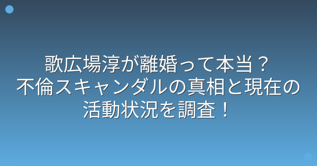 歌広場淳が離婚って本当?不倫スキャンダルの真相と現在の活動状況を調査!