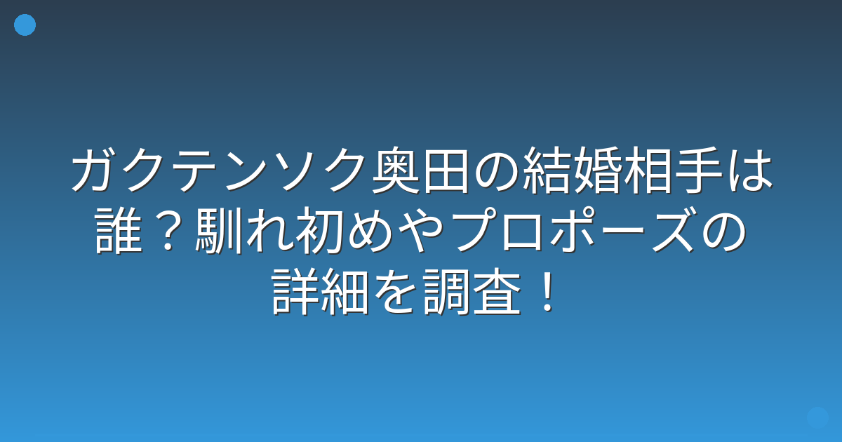 ガクテンソク奥田さんと結婚相手の馴れ初めについては、具体的な詳細は公表されていません。