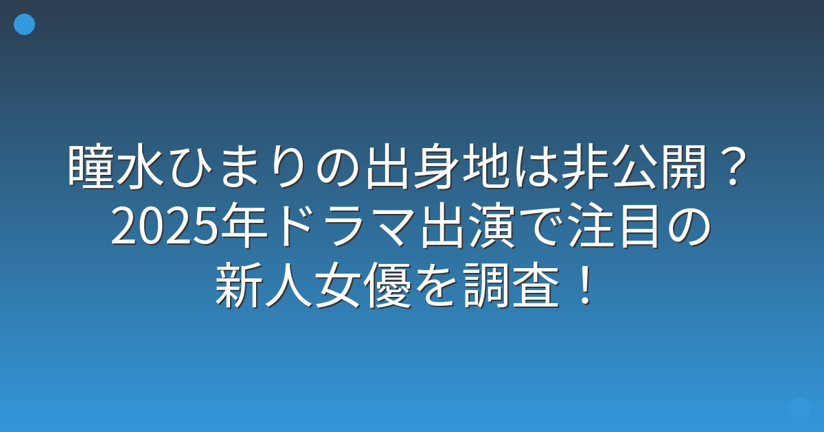 瞳水ひまりの出身地は非公開?2025年ドラマ出演で注目の新人女優を調査!