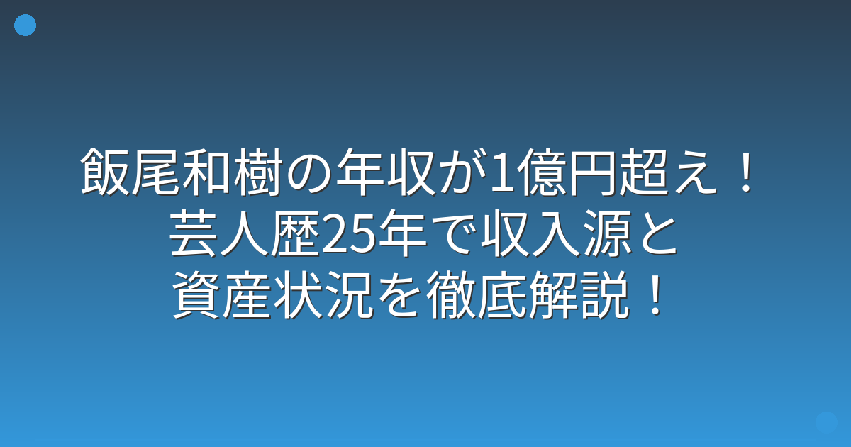 飯尾和樹さんの2025年における推定年収は、7,500万円から1億円と言われています。