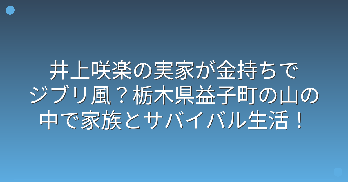 井上咲楽さんの実家は栃木県益子町の山の中にあり、「ジブリ風」「サバイバル生活」として大きな話題になっています。