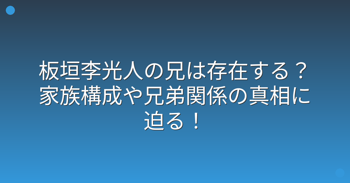 複数の情報源を確認しましたが、板垣李光人さんの兄の存在を確実に示す公式発表や信頼できる情報は見つかりませんでした。