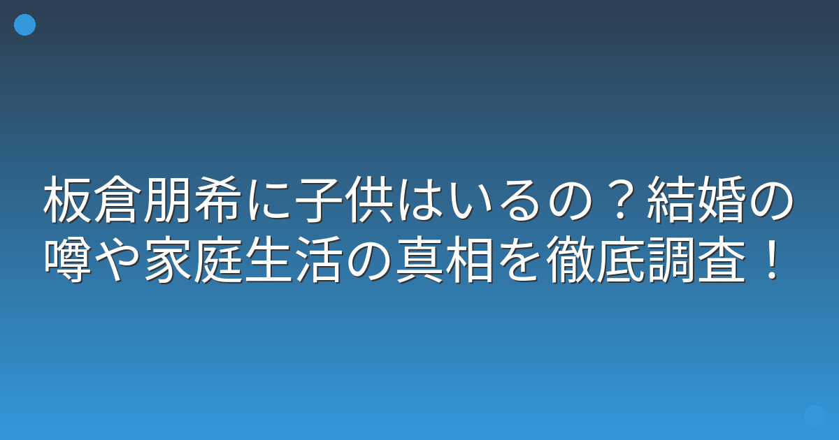 まず最初に、多くの方が気になっている「板倉朋希さんに子供がいるのか」という疑問についてお答えしましょう。
