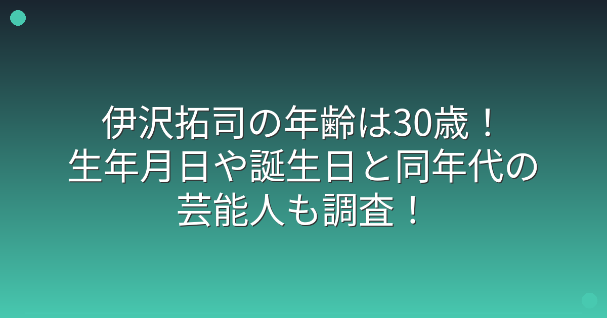 伊沢拓司と同年代の芸能人は?